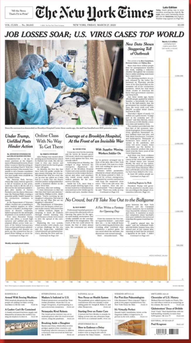 Last year, when the pandemic hit, companies cut jobs like they were going out of style. I will never forget the front page of the New York Times last year on March 27th: